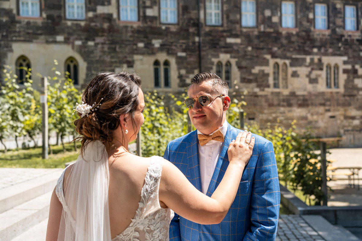 Das Shooting mit Tania und Sebastian hat einen sehr klassischen, nostalgischen Charakter. Die Bilder strahlen Ruhe und Eleganz aus und lassen die besondere Verbindung der beiden klar hervortreten. So entstanden Aufnahmen, die zugleich zeitlos wirken und das Paar perfekt in Szene setzen.
