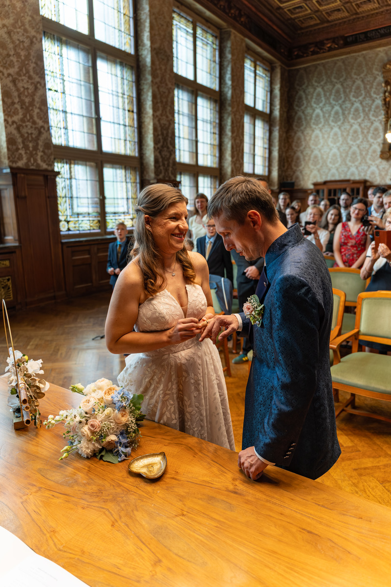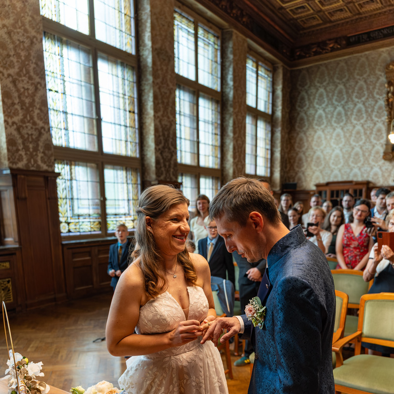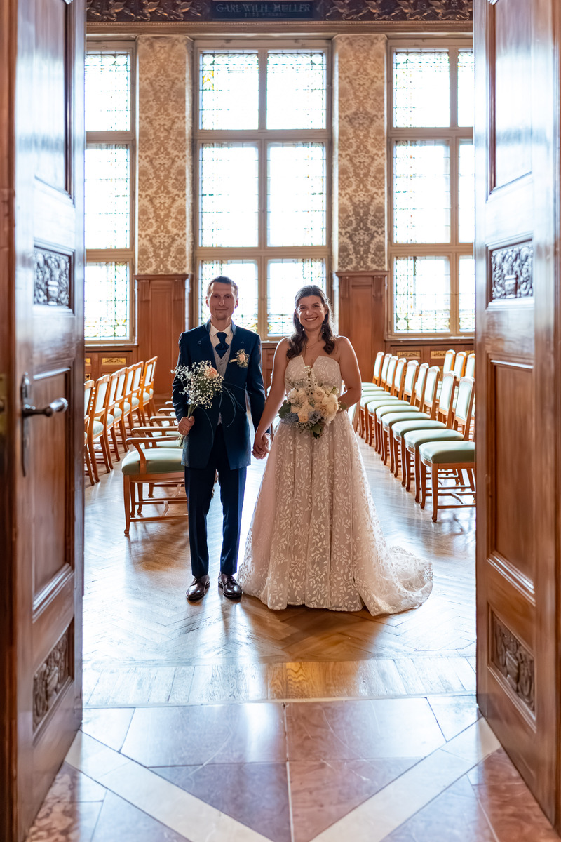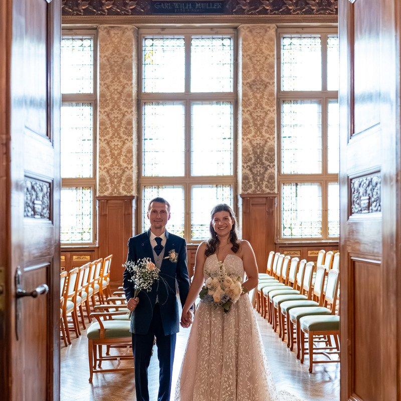 Die Hochzeit von Nicole und Thilo war ein wahrhaftiger Traum. Die Zeremonie fand in Leipzig statt, wo zahlreiche zauberhafte Bilder entstanden: zunächst im Plenarsaal des Neuen Rathauses, anschließend in einem Park und später im eleganten Veranstaltungssaal eines Hotels. Dieser unvergessliche Tag wird allen sicherlich noch lange in Erinnerung bleiben.